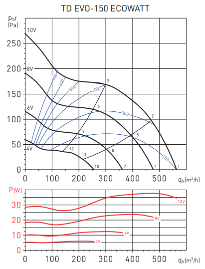 Канальные вентиляторы с диагональными лопатками Soler & Palau серии TD EVOWATT представлены моделями различных типоразмеров с производительностью от 190 до 1780 м3 /ч. Изменение скорости вентилятора производится в диапазоне от 10% до 100%, возможно 2 варианта регулирования: при помощи потенциометра, расположенного в клеммной коробке или при помощи внешнего потенциометра REB-ECOWATT (опция). Также, допускается вариант управления по внешнему сигналу 0-10В.