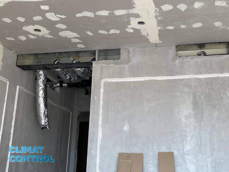 В данной квартире приточная система предусмотрена застройщиком, но для более эфективной работы было принято совместно с заказчиком дополнить систему канальным вентилятором CAB-250 ECOWATT. Так же по желанию заказчика для более глубокой отчистки воздуха в приточную систему была смонтирована система фильтрации воздуха Ventmachine Канальный ФКО-600 LED. Данная система фильтрации обеспечивает дополнительную трехступенчатую очистку приточного воздуха от пыли, вредных газообразных соединений, молекулярных загрязнений, бактерий и вирусов. Частично выполняет роль шумоглушителя.